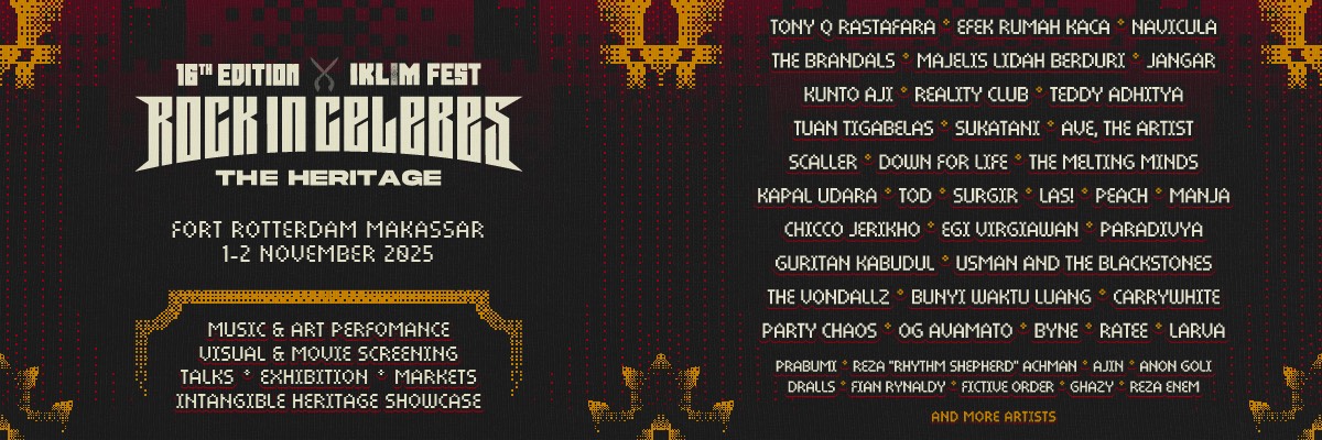 Ini baru! Pada edisi ke-16 tahun 2025, Rock In Celebes juga menyaji deretan penampilan dari para penjaga warisan kebudayaan tak benda Sulawesi Selatan, yang meliputi